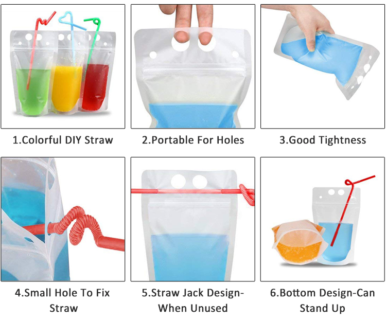 Product name:translucent reclosable hand held zipper plastic drinking bags